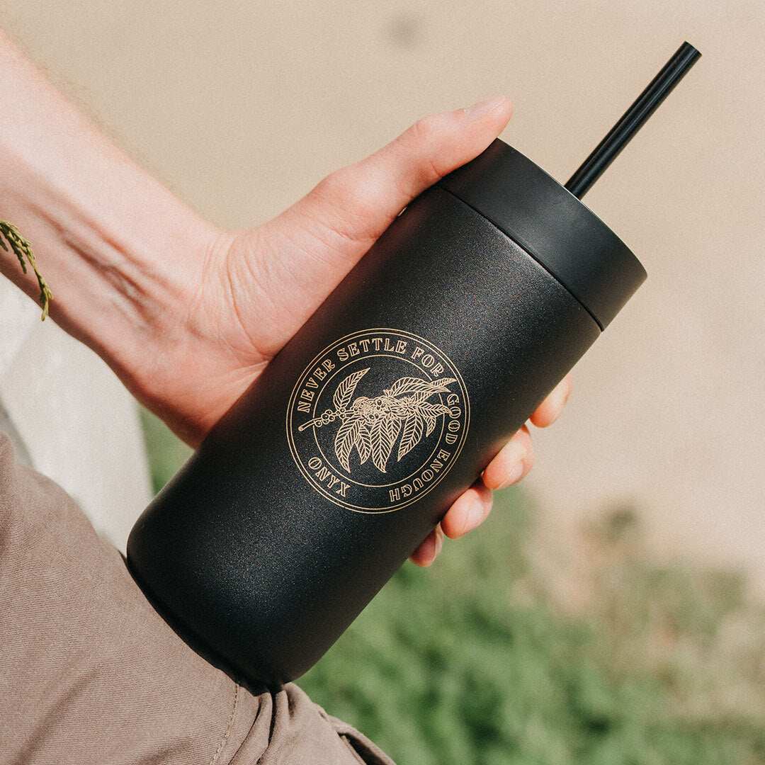 This spill resistant 16oz Carter Cold features a badge design from our newest merch collection (coming soon) along with a new hand drawn script mark on the reverse. It is an ode to the source and an emblem of excellence.