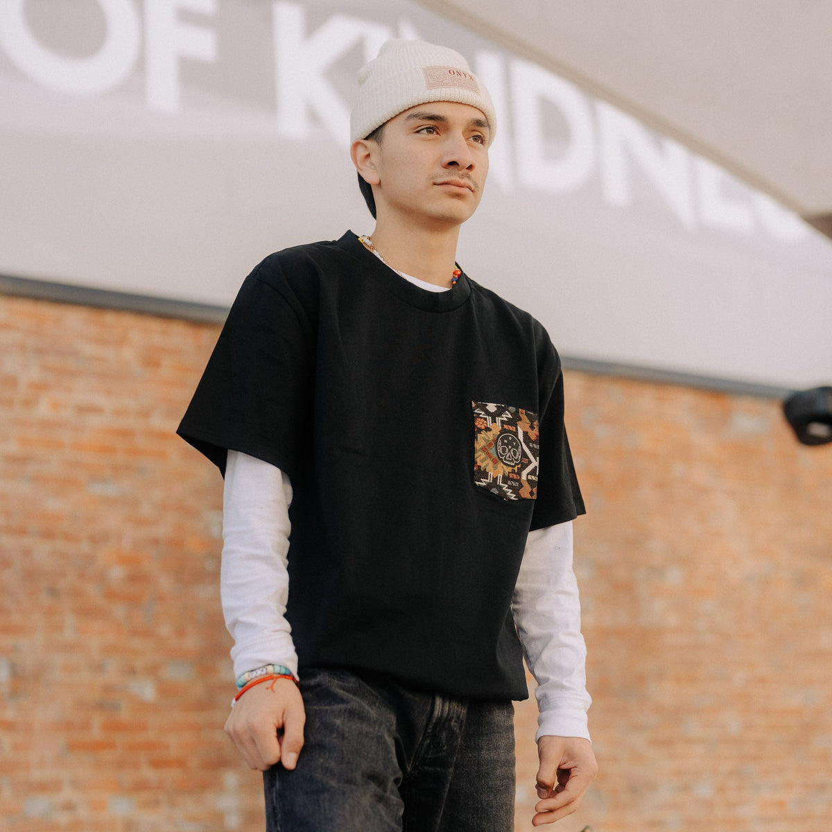 We couldn’t help but extend our latest line featuring Turkish textiles to a tasteful heavyweight pocket tee. The Aydin edition is presented as a premium cotton shirt in black, with the same Istanbul-sourced fabric as a seamlessly stitched pocket on the upper left chest. Our block logo woven label is also decorated just above the bottom right hem.