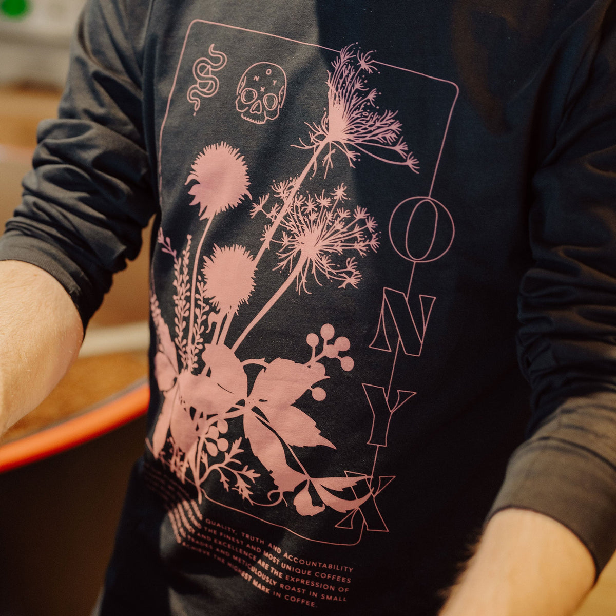 The Fine and Dandy relaxed-fit long sleeve extends our inspiration from Art Nouveau with a more distantly related sketch that hits closer to home. Detailed illustrations of florals and foliage that can be found right here in our home of Northwest Arkansas adorn the front of this cool-weather-ready heavyweight long sleeve tee. Available in Walnut or Black.
