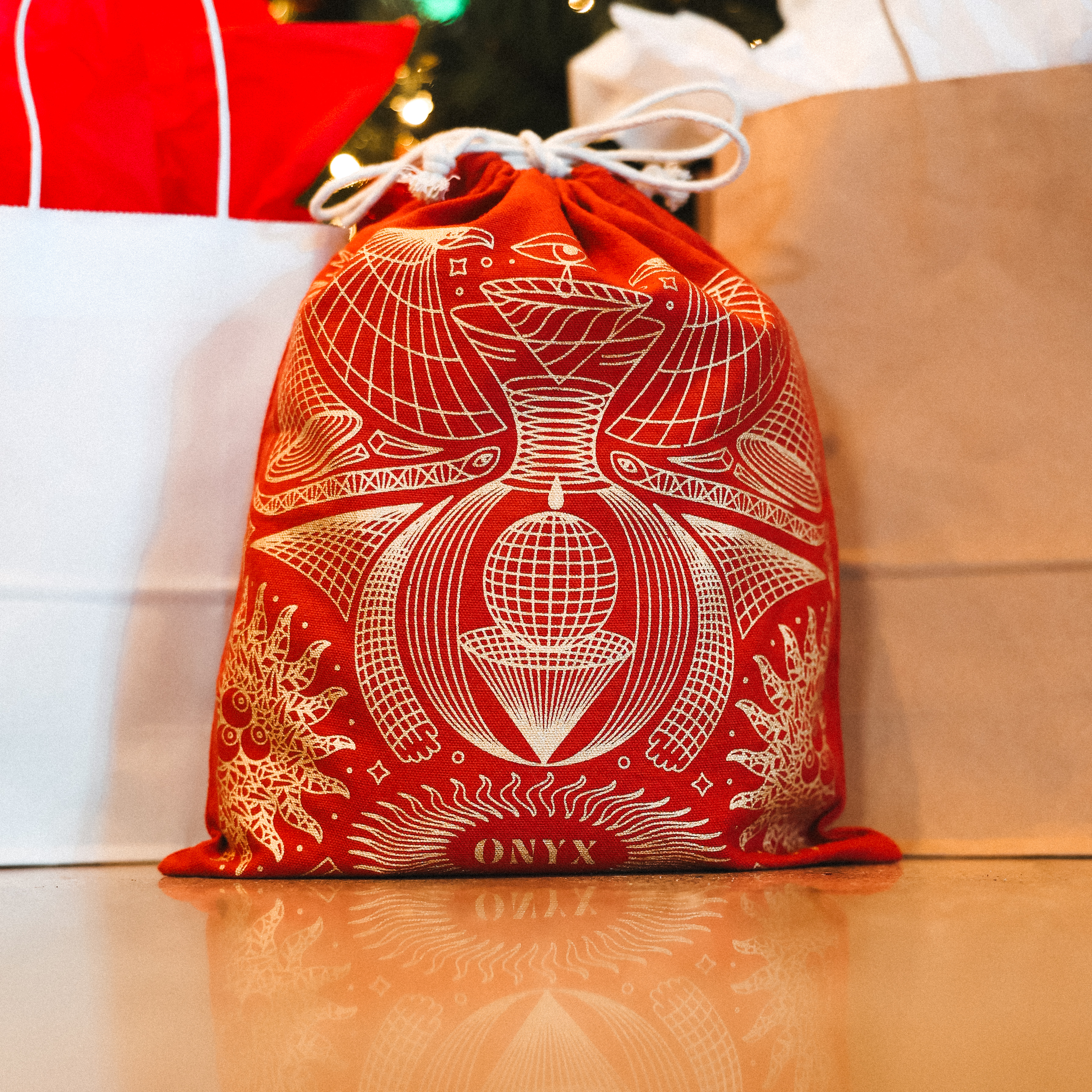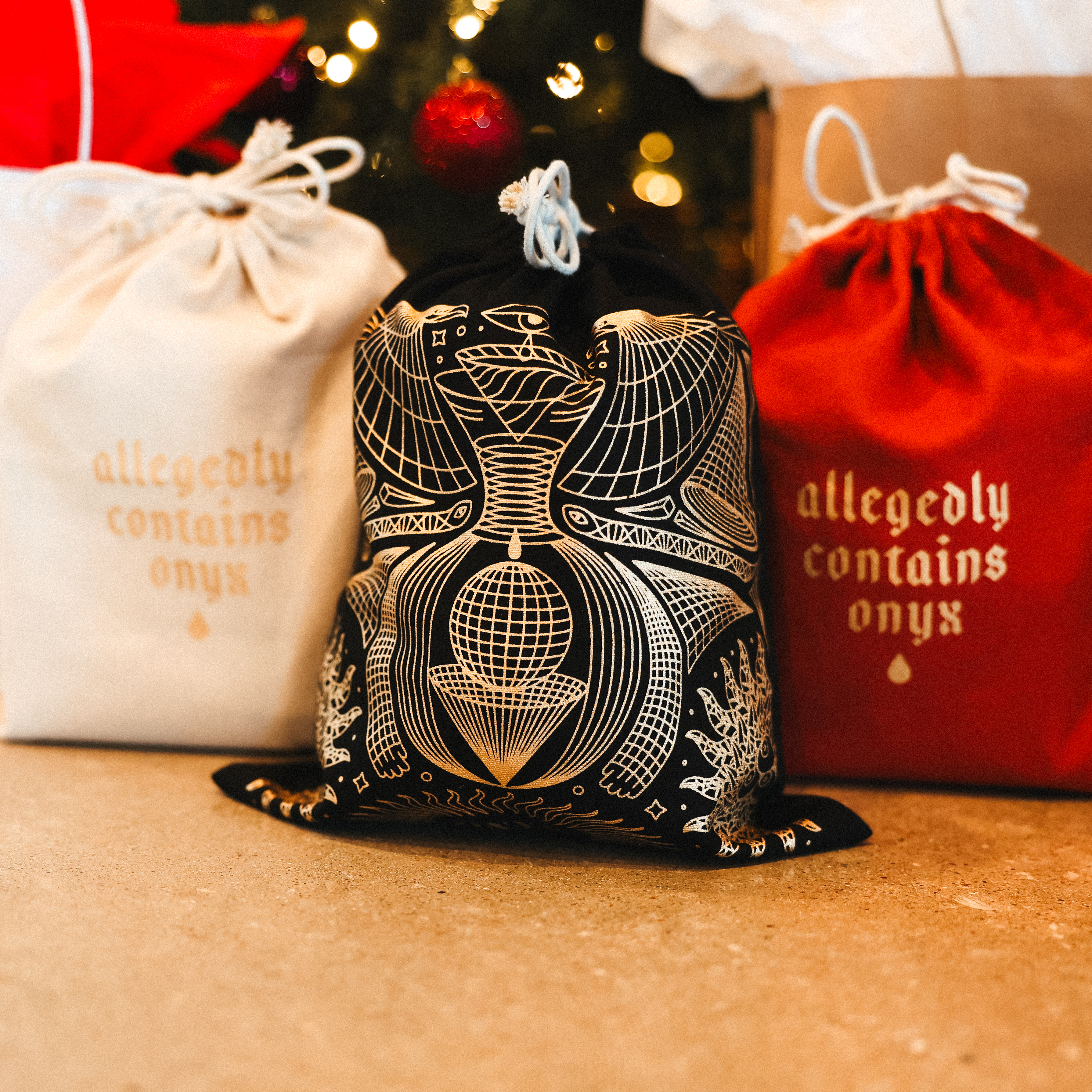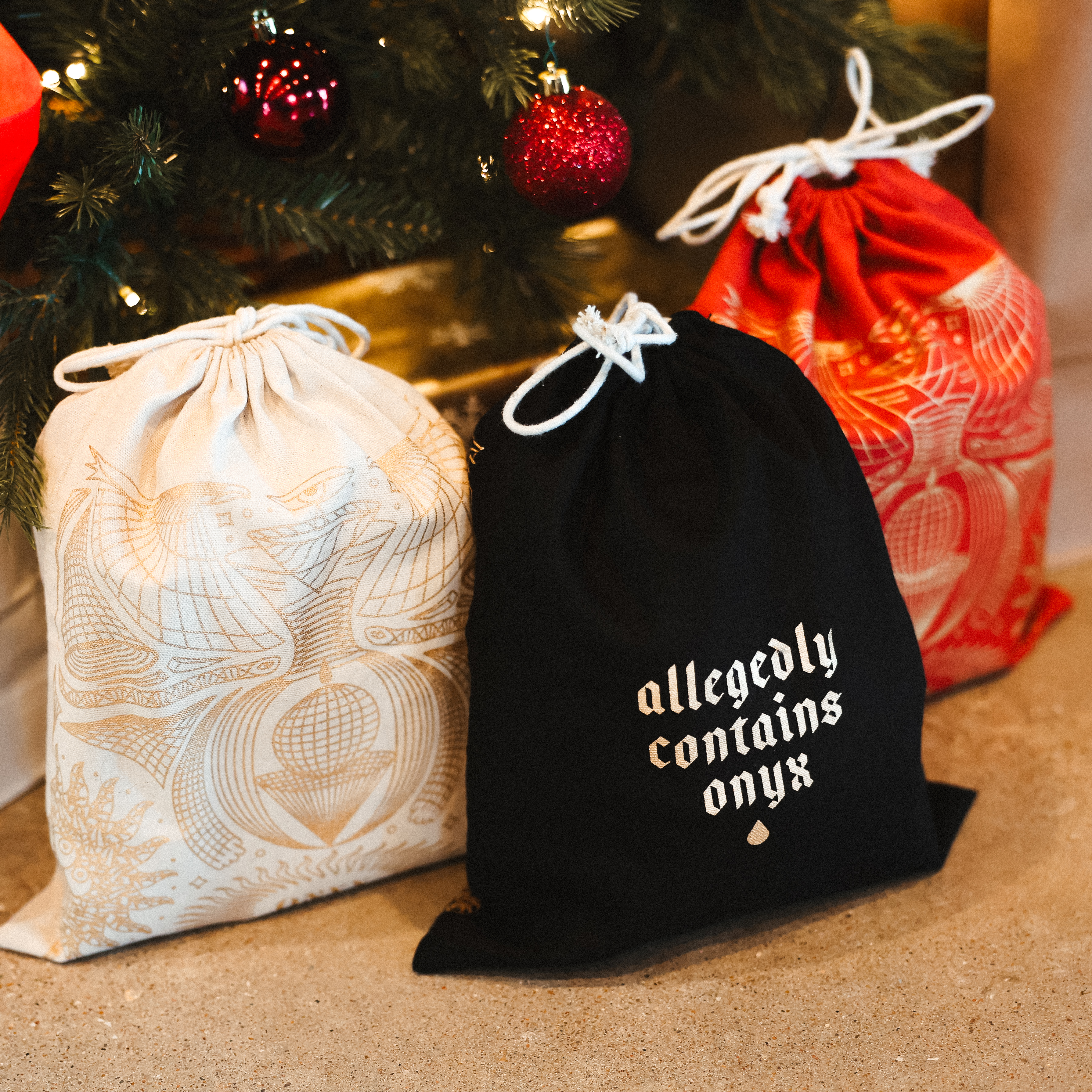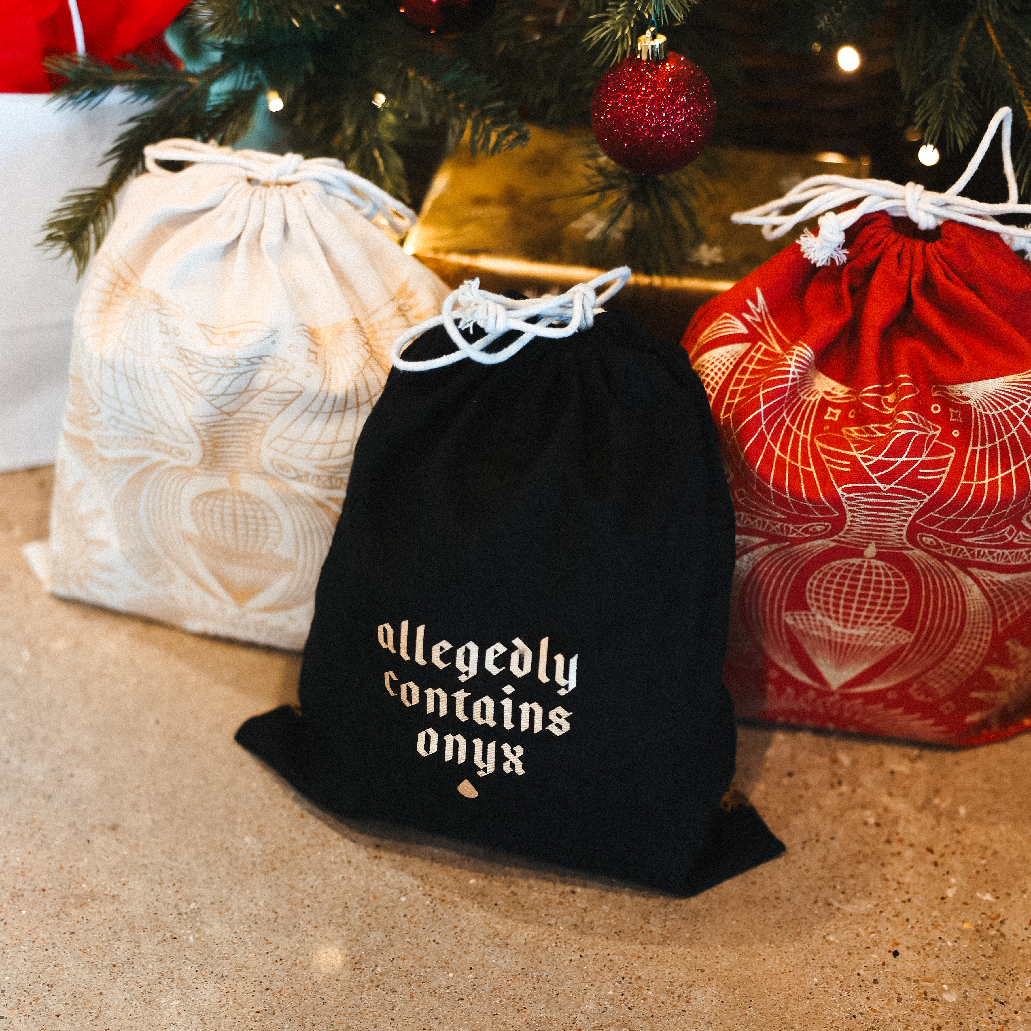 Don't just plan to give the gift of Onyx–build anticipation by letting your family and friends imagine what may be in inside. Decorated with custom artwork on one side and an "allegedly contains onyx" type lockup on the other, these gift bags are available in three colors.