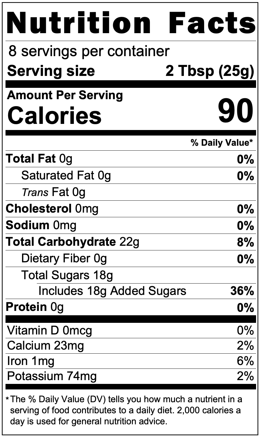 A serving of this chai latte powder (2 tablespoons or 25g) contains 90 calories and 22g of carbohydrates, with 18g of added sugar, making it a sweet and energy-boosting option. It has 0g of fat and protein, and provides small amounts of calcium (2% DV), iron (6% DV), and potassium (2% DV). It is an enjoyable treat, especially when paired with milk for added nutrition.