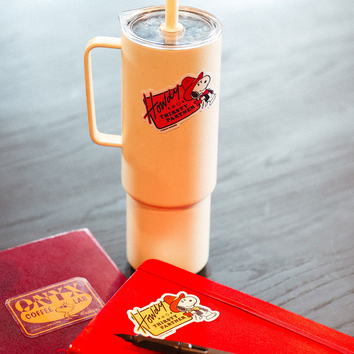 Add a playful touch to your favorite things with the Snoopy Sticker Set, featuring custom Peanuts x Onyx illustrations. These stickers bring joy and nostalgia to everything from notebooks and laptops to water bottles and more. Perfect for Peanuts fans young and old, this set is great for gifting or keeping as part of your own collection. Make your world a little brighter with the gang from Peanuts!