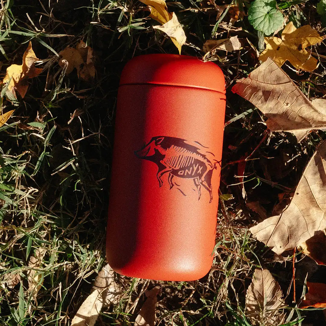 A deep red tribute to our roots. This sleek cup features the Onyx boar in motion… strong, untamed, and built for the daily pursuit. A subtle nod to home, crafted for coffee on the go.